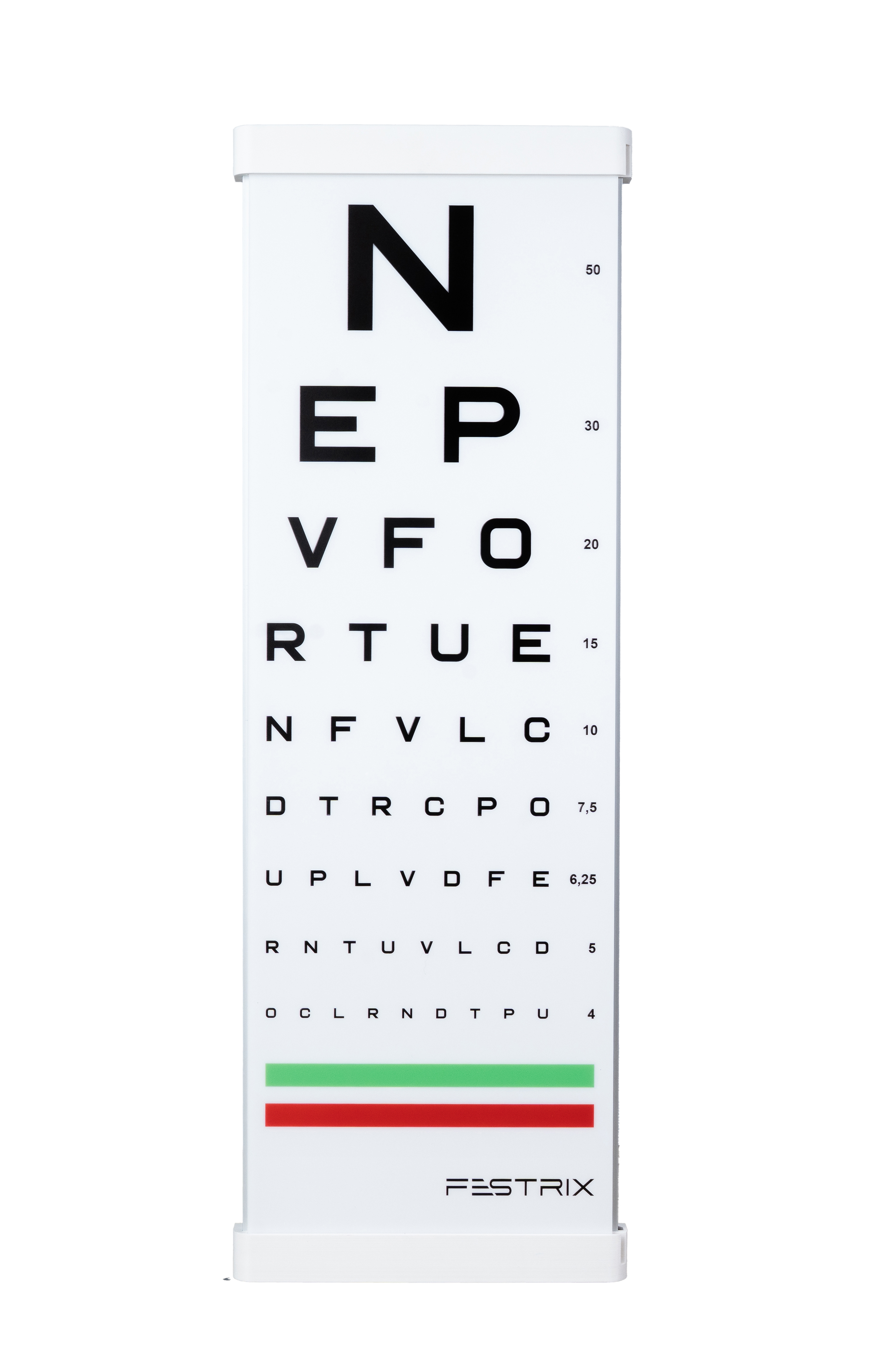 Výnimočná praktickosť spočíva v jednoduchej používateľskej výmene zobrazovaných optotypov – v priebehu chvíle vymeníte matnice (písmená, čísla, symboly, E alebo Landoltove kruhy C).